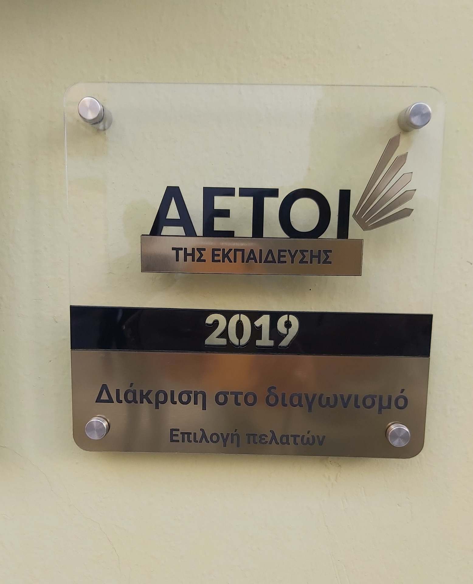 - 7. ΔΙΑΚΡΙΣΗ στην κατηγορία ‘ΕΠΙΛΟΓΗ ΠΕΛΑΤΩΝ 2019’ για το σχολείο μας στους Αετοί της Εκπαίδευσης. (Η μοναδική επιχείρηση στην Παιονία με διάκριση στους Αετοί της Εκπαίδευσης για το έτος 2019.)